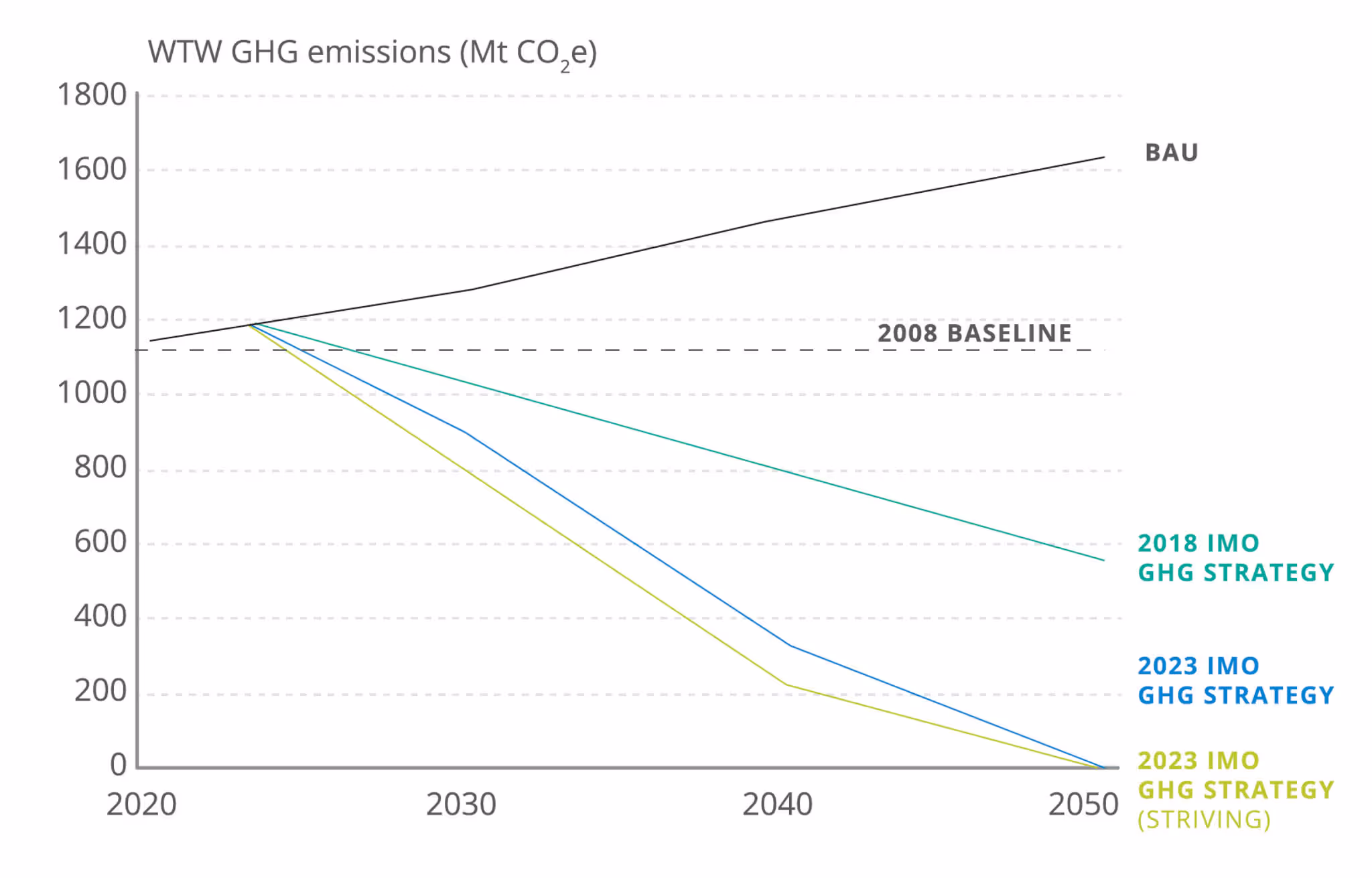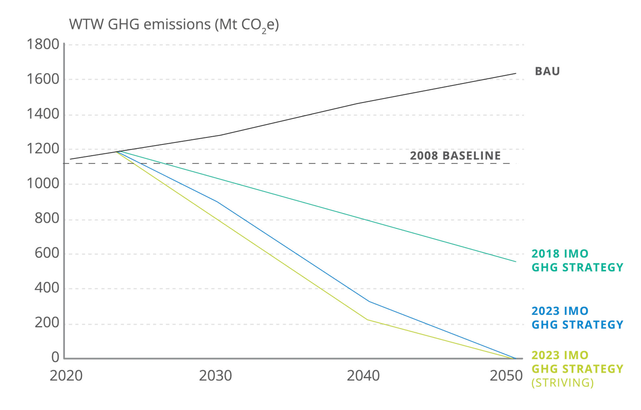 Significantly, in July 2023, the IMO released its revised GHG Strategy. In a landmark moment for the sector, IMO member states agreed to:
