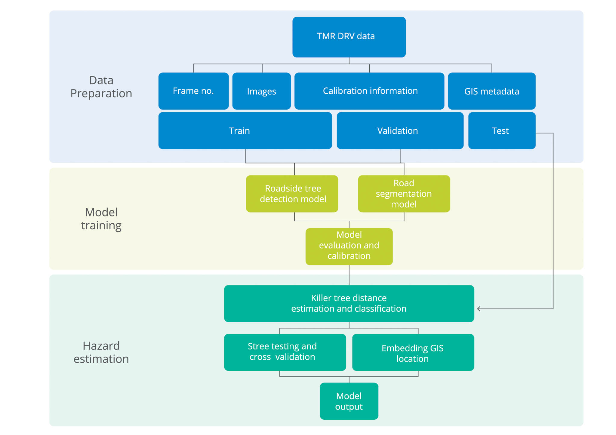The project proposed that by using the front view camera’s DVR image data, training of a custom model could be undertaken for detecting killer trees and reporting the geographical location. An overview of the development process is described in this article, with Figure 3 below depicting the block diagram for the proposed methodology.