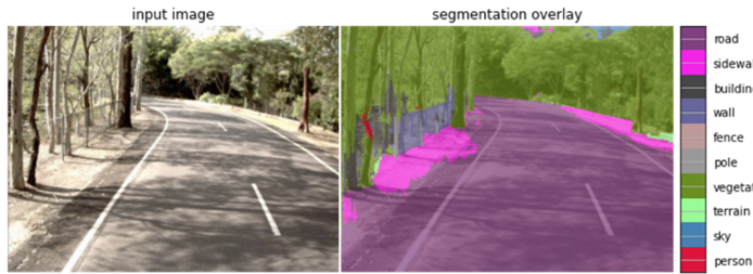For road segmentation, an off-the-shelf MobileNet (Howard et al. 2017) model trained on the CityScapes dataset (Cityscapes Dataset 2022) was identified for use in the project. However, the available model wasn’t deemed precise enough due to the inclusion of the road shoulder and gravel paths in its mask (Figure 6).