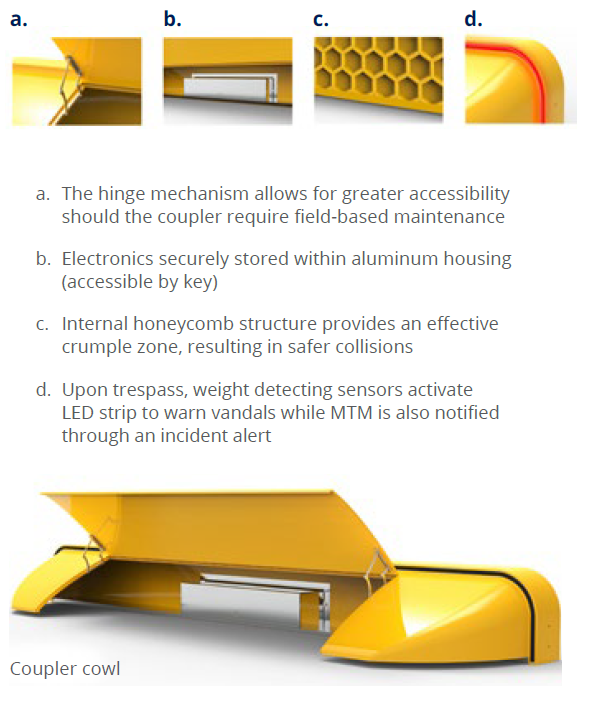 Two refined retrofit interventions emerged from the prototyping and evaluation processes. The first intervention, a protective coupler cowl, greatly reduces access to the windscreen. Its angled design was trialled through user testing (as shown in Figure 8 below), confirming its effectiveness in limiting balance when standing or crouching. Should vandals access the cowl, weight-detecting sensors alert both the vandal through a visual alarm, and operators through an incident-alert system. The second intervention, a protective, automated cowl, encloses the open cavity surrounding the windscreen wipers. This ensures that the windscreen wipers cannot be leveraged for grip, while also protecting them when not in use.