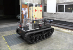Fitted with GPS, 4 Intel RealSense cameras, an advance spatial Inertial Navigation System (INS), a small onboard computer and wheel treads, this trackside device can move about in the rail space and climb over ballast onto rail tracks. It also has internal track wheels that can be lowered to deploy the device to the rail for rail-based applications. This capability gives it the potential to undertake remote rail inspections or install safety equipment with the addition of appropriate peripherals. Additionally, it was used to build an internal map representation of the rail environment by performing simultaneous localisation and mapping (SLAM).