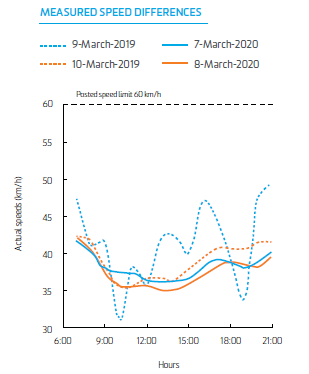 Traffic volumes and speeds were collected from six tube sites along Point Nepean Road, Dundas Street and Nelson Street for both the ‘before’ period (9 March to 18 March 2019) and two ‘after’ periods (18 to 27 January 2020 and 7 to 16 March 2020). The key findings were: